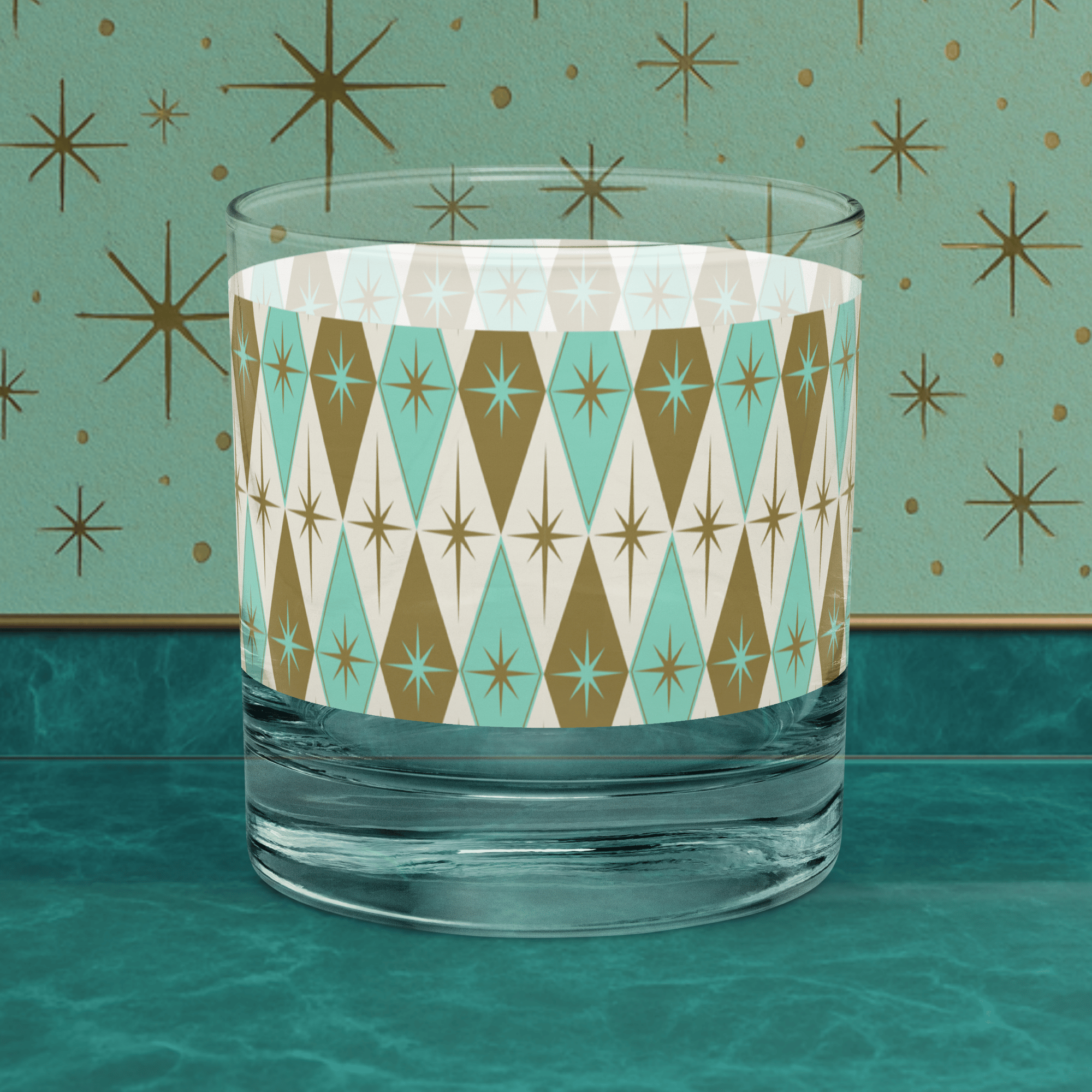 Starlite Drive Aqua & Gold Diamond 10.5oz Rocks Glass